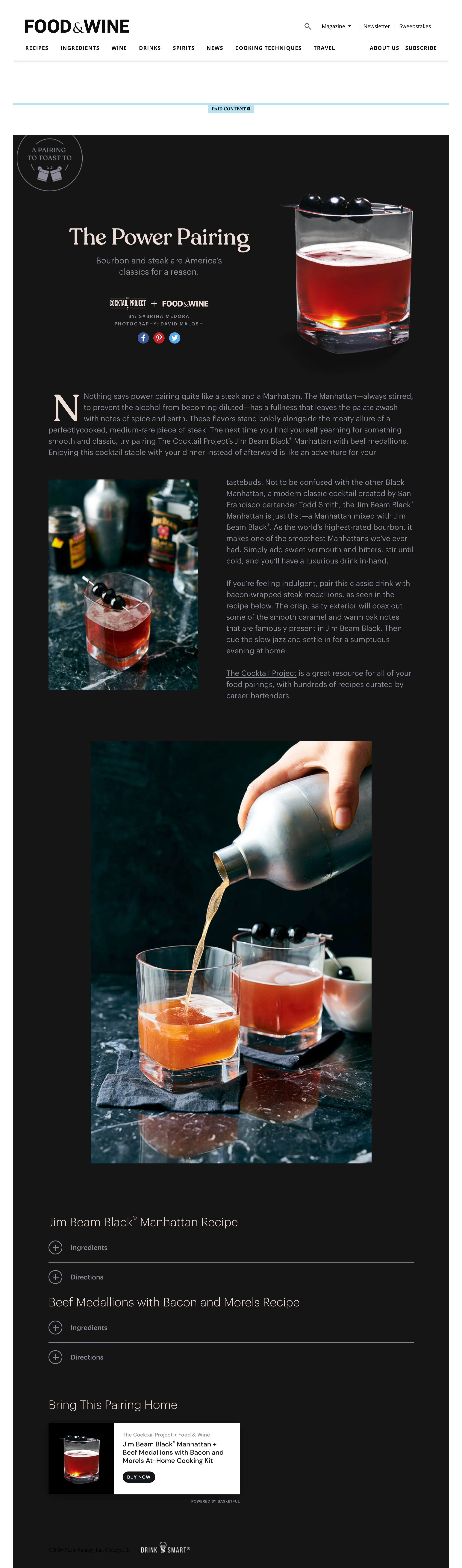 Project-managed a seasonal branded content series for Beam Suntory’s The Cocktail Project in partnership with Food & Wine, delivering editorial experiences pairing cocktails with at-home dishes.