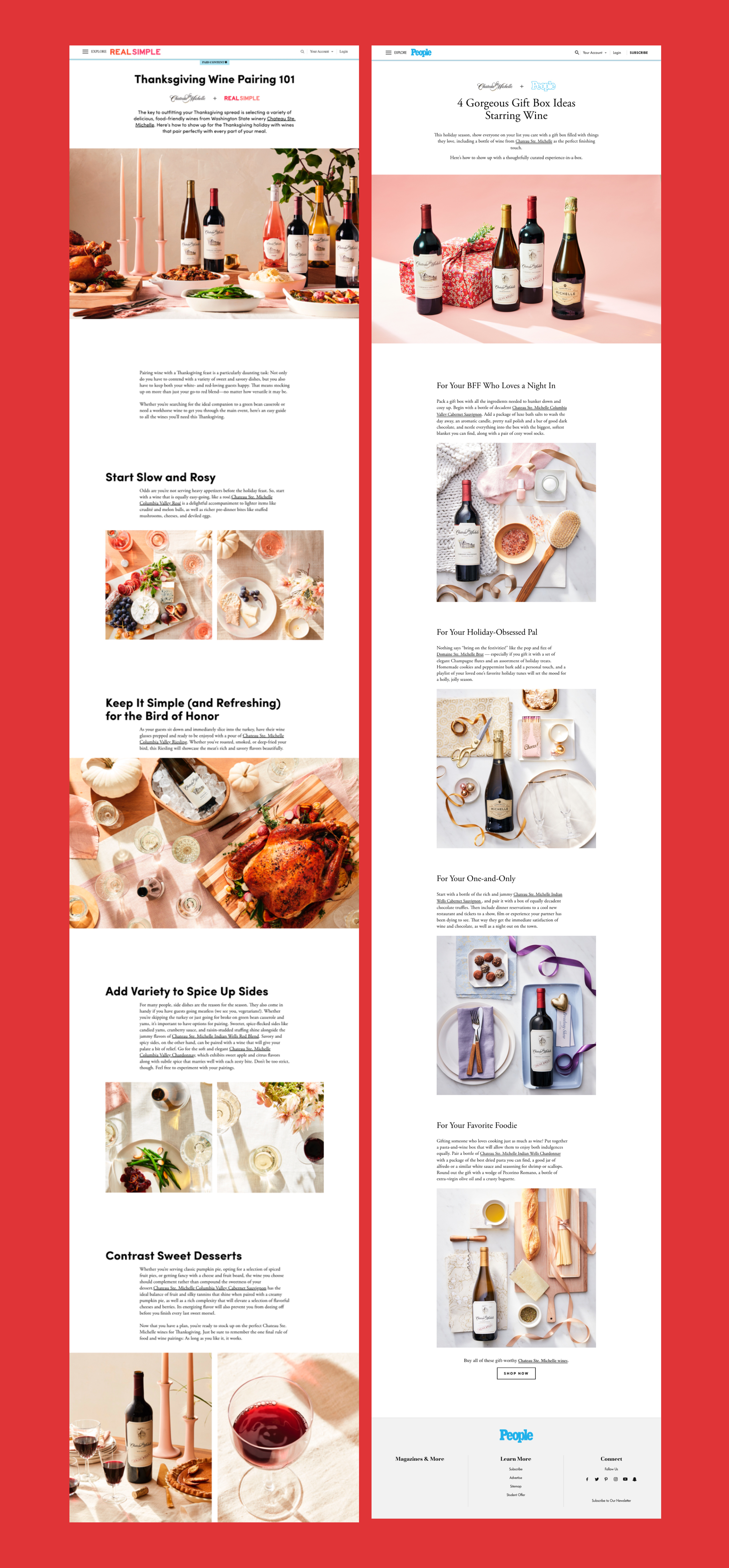 Project-managed a multi-title native content program for Chateau Ste. Michelle in partnership with Foundry, delivering seasonal storytelling across leading lifestyle publications.