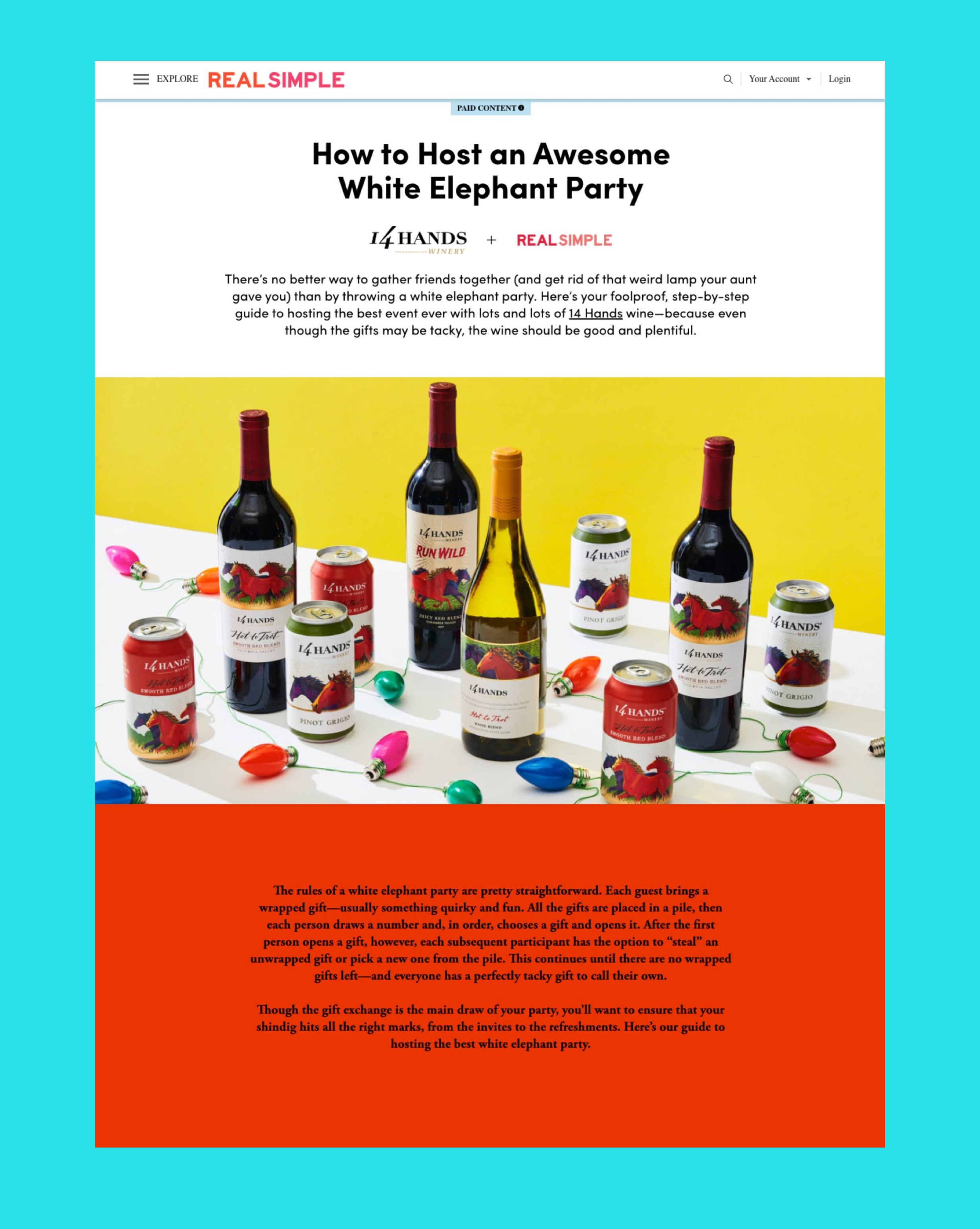 The program published custom editorial content across Real Simple, PEOPLE, Food & Wine, and Travel + Leisure, promoting seasonal entertaining moments and brand engagement.